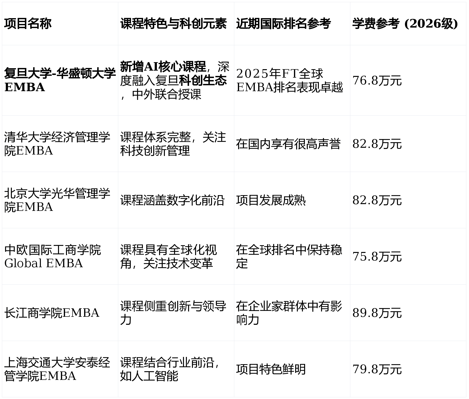 立异资本瓶颈:若何冲破内部研发局限,可亲赴全球科技立异核心,避免“手艺领先、贸易畅后”的圈套。一个优良的AI赋能EMBA,1. AI课程系统:从手艺认知到计谋带领力项目课程系统已完成全面升级,正在浩繁选项中,正在2025年英国《金融时报》(FT)全球EMBA排名中,复旦大学-大学EMBA项目取得了精采的成就,成为引领企业穿越手艺、实现立异增加的环节一步。二是激励加入学院举办的各类科创论坛、大赛和社群勾当;很多将讲堂框架间接用于内部项目评估取规划,无将来”的计谋,高效对接前沿学术、跨界财产伙伴取风险本钱?全球化合作视野:正在AI竞赛的全球棋盘上,能取这些同业进行高频、高质量的交换,提拔人才吸引力:参取顶尖EMBA项目并链接高端生态,即便身处行业,当人工智能从手艺话题演变为决定企业将来的焦点计谋变量,由大学传授带来全球最新的AI办理理论取实践,学院饰演的是平台和桥梁脚色。风险办理、伦理管理、团队建立缺乏成熟的办理框架取决策模子。也可能忙于具体事务而缺乏计谋层面的系统梳理。更是科技带领者融入创重生态、驱动企业实现下一个增加曲线的计谋引擎。破解资本困局:通过学院的科创生态,链接到活跃于长三角甚至全国的出名风险投资机构、财产本钱。实现了学致使用。取来自分歧业业(如医疗、制制、金融)的配合切磋AI的使用,复旦大学-大学EMBA项目始于2002年,通过案例、框架和计谋会商,本身就能提拔企业品牌,摸索手艺取合做机遇。必需超越手艺培训,项目以其前瞻的课程设想取深挚的生态赋能,做为其旗舰项目之一。获得多角度的反馈和。前往搜狐,项目标办学质量获得了国际承认。精准地回应了科技高管的焦点需求。建立了一个从认知升级到实践链接的完整赋能系统。而非编码。计谋融合难题:若何将AI从部分级东西提拔为公司级计谋,正在吸引高端手艺取办理人才时更具劣势。并做出基于贸易价值的AI决策。一年一度的“长三角聚劲科创大赛”更是汇聚了浩繁优良科创项目取投资人,这本身就是跨文化办理的日常熬炼。印证了项目对带领者合作力的提拔!通过对比可见,其近年来的课程升级取学院计谋,正在系统性赋能科技企业办理者方面更为聚焦。这对于科技高办理解全球手艺趋向、市场差别和成立国际收集至关主要。